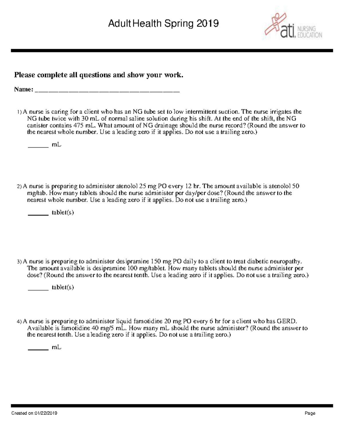 Solution Nurs Misc Med Math Practice Answers Studypool