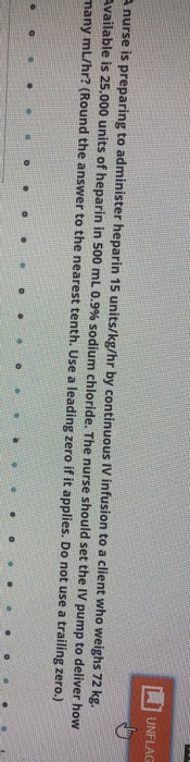A Nurse Is Preparing To Administer Heparin 14 Units Kg Hr By Continuous Iv Infusion For A Client Homeworklib